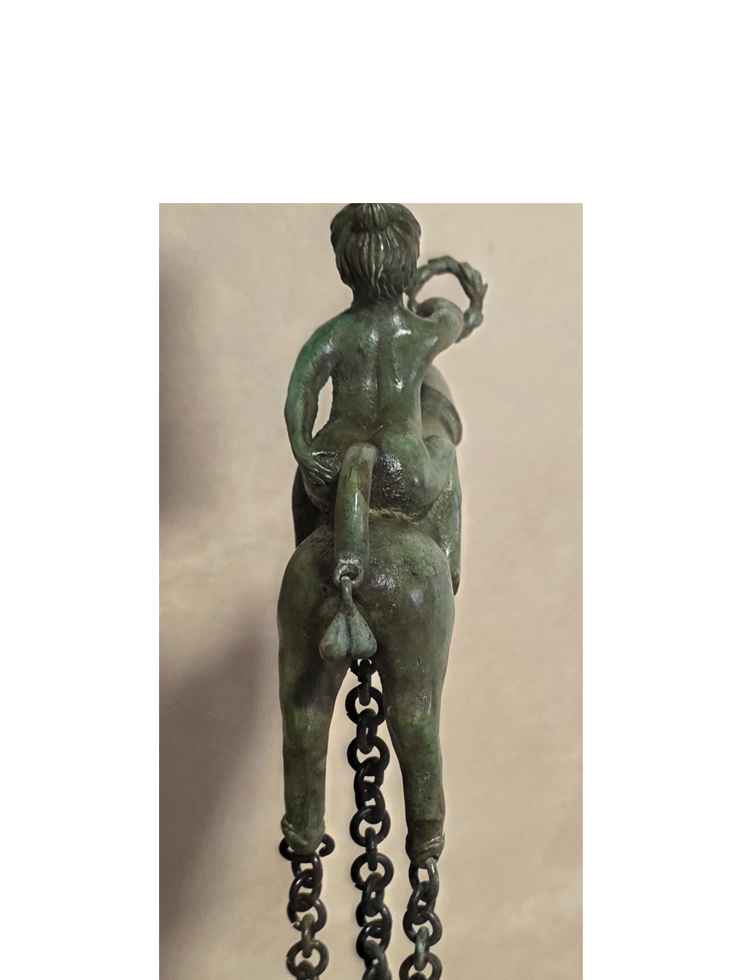 Композицията е динамична и включва двойно притежание. Фалосът е оформен като пазител с вериги, от които висят общо 3 бронзови камбанки и звънчета, предназначени да звънят при най-малкия полъх на вятъра или докосване.